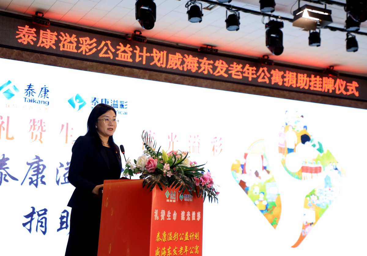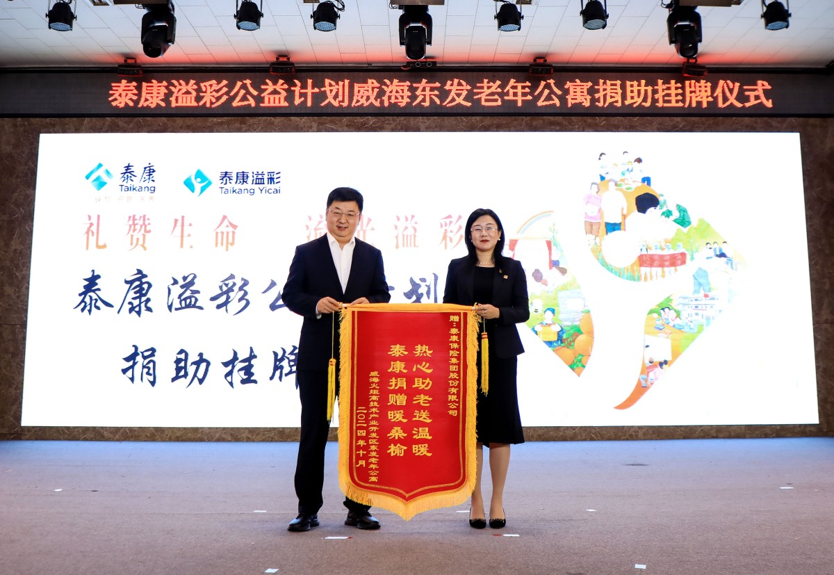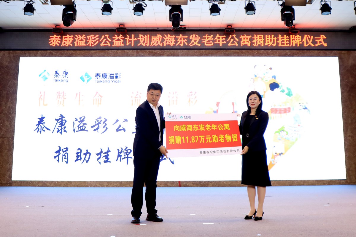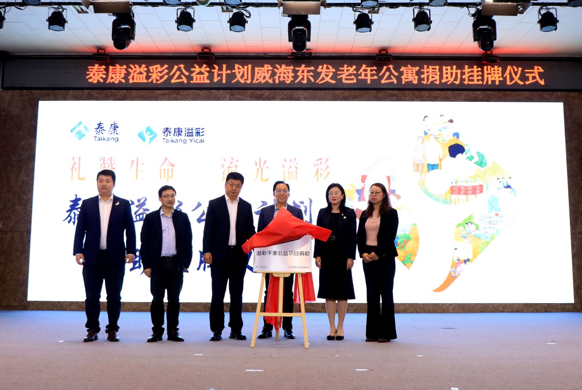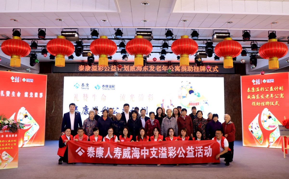 金秋送爽,“溢”路同行。10月23日,泰康“溢彩千家”公益項目捐助掛牌儀式在威?;鹁娓呒夹g(shù)產(chǎn)業(yè)開發(fā)區(qū)東發(fā)老年公寓舉行,標志著泰康“溢彩千家”公益項目正式落地濱海小城,更好地助力威海養(yǎng)老事業(yè)發(fā)展。威海市保險行業(yè)協(xié)會副秘書長白如和、高區(qū)社會事業(yè)局養(yǎng)老服務(wù)科科長吳漢明、老年公寓黨支部書記苗曉丹、泰康人壽威海中支負責人王彬、副總經(jīng)理王琴,老年公寓長輩以及泰康人壽威海中支HWP溢彩志愿者及員工代表等參加了儀式。