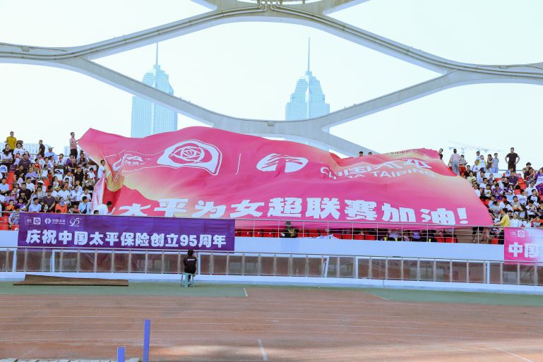 5月18日,由中國(guó)太平獨(dú)家冠名的中國(guó)女足超級(jí)聯(lián)賽第八輪,山東體彩女足在棗莊文體中心主場(chǎng)迎來了實(shí)力不俗的江蘇無錫女足,太平人壽山東分公司聯(lián)合棗莊中心支公司組織2300余人“觀賽團(tuán)”與觀眾一起匯聚成11832人的火熱現(xiàn)場(chǎng),為女足姑娘應(yīng)援!