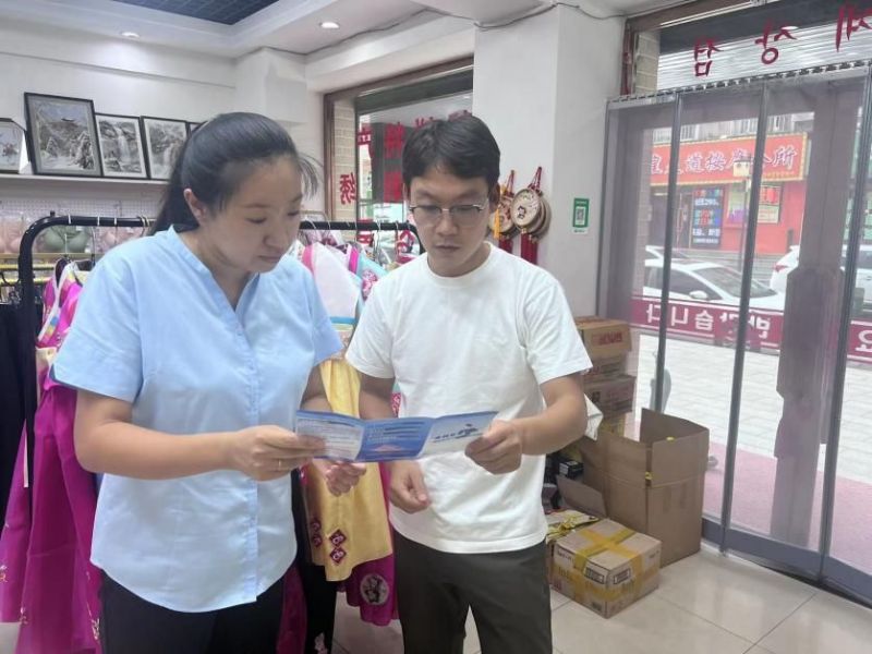 圖:太平人壽工作人員在中朝邊境“高麗街”向商戶宣傳金融知識(shí)