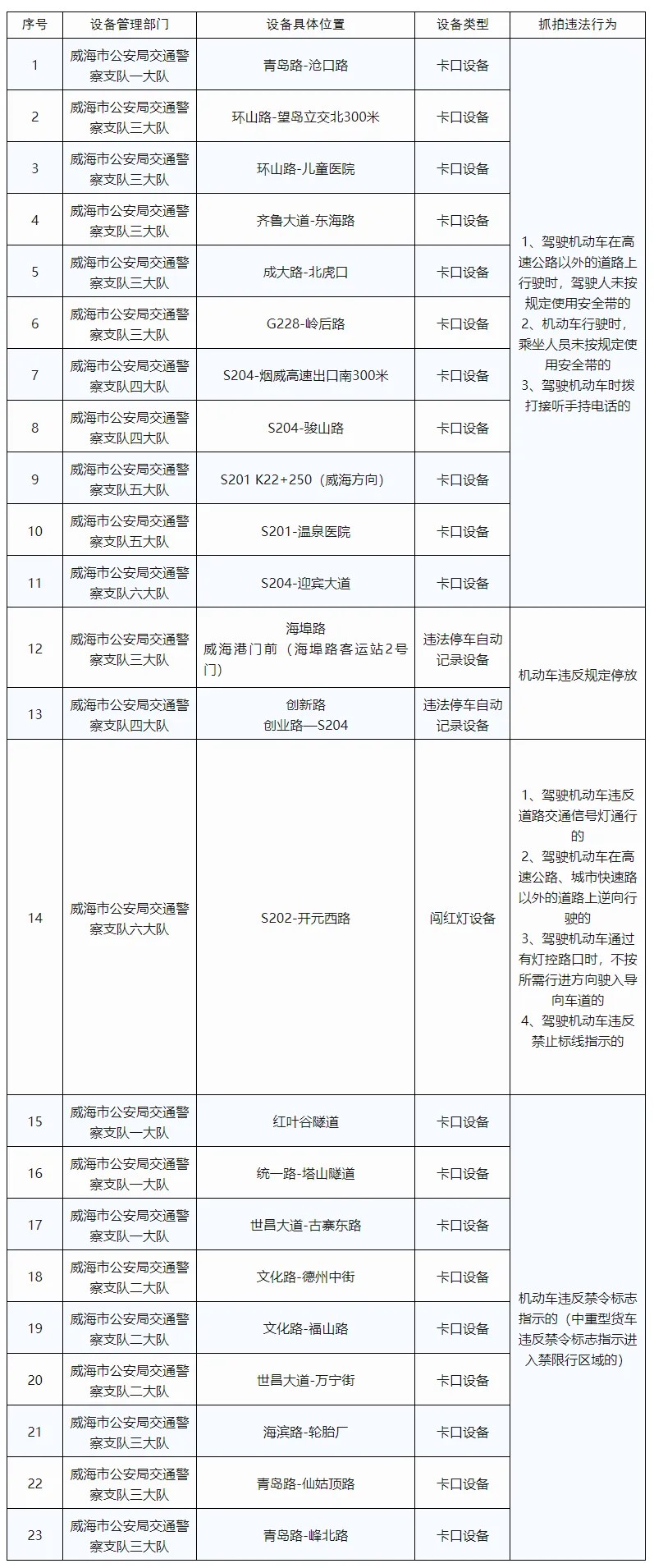 為保障道路交通安全,預(yù)防和減少交通事故的發(fā)生,根據(jù)《中華人民共和國道路交通安全法》及其實施條例等法律法規(guī)和相關(guān)技術(shù)規(guī)范的規(guī)定,依據(jù)《公安機關(guān)執(zhí)法公開規(guī)定》,現(xiàn)將新增的23處交通技術(shù)監(jiān)控設(shè)備予以公示,自2024年12月1日起,將對有關(guān)交通違法行為進行依法管理,請廣大道路交通參與者自覺遵守相關(guān)法律法規(guī),共同維護良好的道路交通秩序。