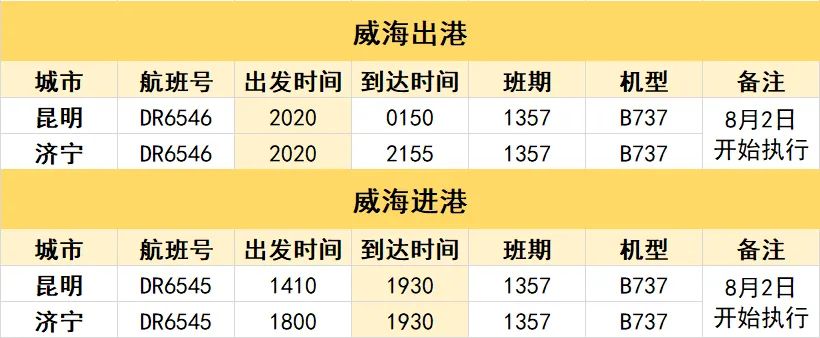 為豐富廣大旅客的出行選擇威海機場積極響應(yīng)市場需求,持續(xù)開通、加密航線,8月2日起開通“威海-濟寧-昆明”航線,8月6日起加密“威海-上海”航線。