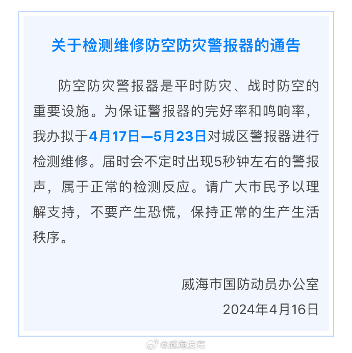 關(guān)于檢測維修防空防災(zāi)警報器的通告