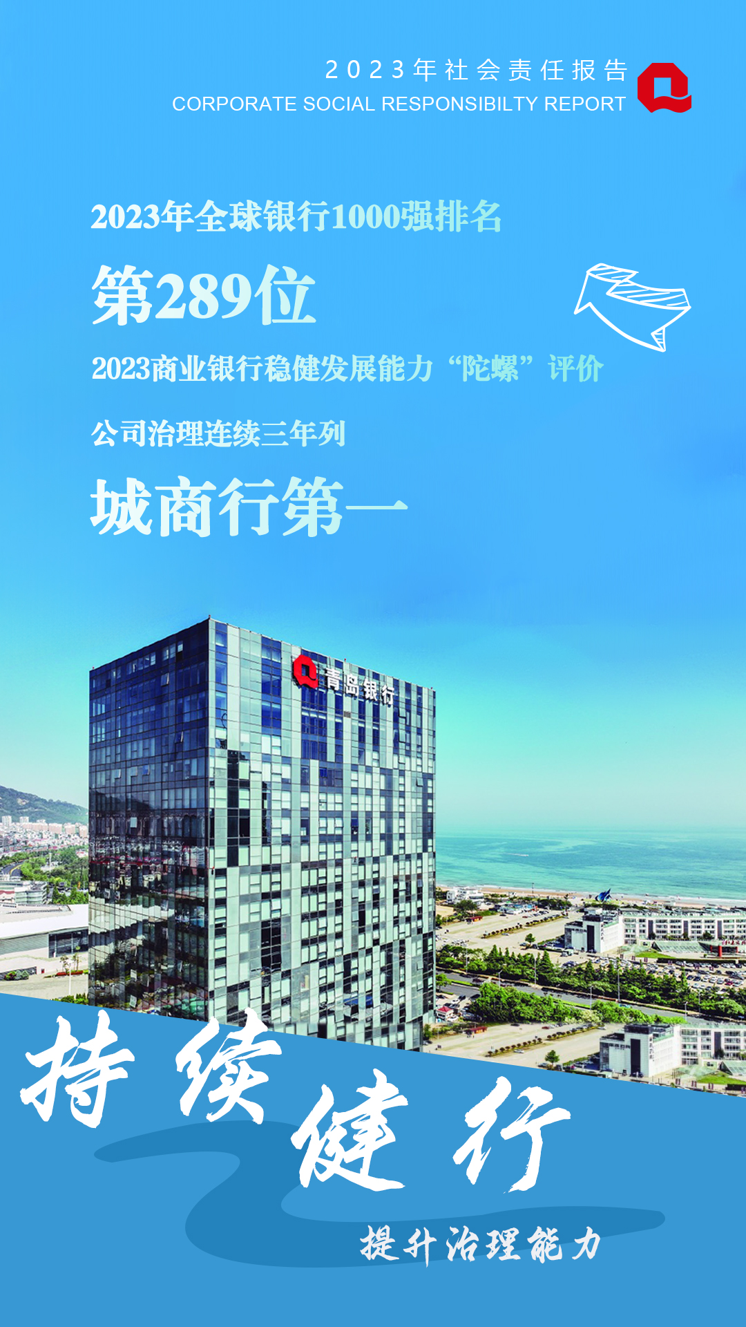 2024年3月28日,青島銀行發(fā)布2023年度社會(huì)責(zé)任報(bào)告,這是青島銀行連續(xù)第8年發(fā)布獨(dú)立的社會(huì)責(zé)任報(bào)告。2023年,青島銀行堅(jiān)持黨建引領(lǐng)航向,主動(dòng)將自身發(fā)展融入地方發(fā)展大局,走高質(zhì)量發(fā)展之路,年內(nèi)管理總資產(chǎn)突破8000億元,站上發(fā)展新起點(diǎn)。穩(wěn)健發(fā)展的同時(shí),青島銀行積極履行地方法人銀行的經(jīng)濟(jì)責(zé)任、環(huán)境責(zé)任和社會(huì)責(zé)任,以金融助力區(qū)域經(jīng)濟(jì)高質(zhì)量發(fā)展。
